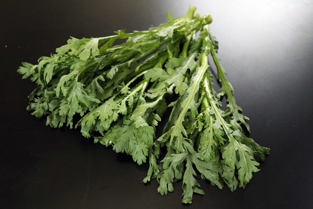 茎も刻んで、葉の部分とかき揚げにしてお出しします。天ぷらにする事で、香りが立ち食欲をそそります。